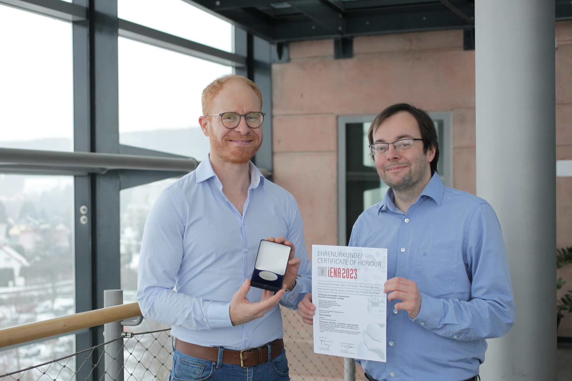 Das IMMS wurde am 12.12.2023 im Wettbewerb der Erfindermesse iENA zur Thüringer Auszeichnungsveranstaltung des PATON – Landespatentzentrum Thüringen an der Technischen Universität Ilmenau für die Entwicklung „Schaltungsanordnung zur Bereitstellung der Ladeenergie für einen Pegelwechsel auf einem Signalbus, Verfahren zur Kalibrierung und Signalübertragungssystem“ mit einer Silbermedaille geehrt. Ende Oktober hatte das PATON stellvertretend für die Erfinder Georg Gläser und Benjamin Saft die Arbeit auf der iENA in Nürnberg in den Wettbewerb eingebracht. Mit dem Latch-basierten aktiven Ultra-Low-Power-Pull-Up-Emulator lassen sich kommerzielle Sensoren leichter für neue Anwendungen nutzen: Aktive drahtlose Sensoren, wie z.B. Zigbee-Sensoren, können länger per Batterie genutzt werden. Passive drahtlose Sensoren ohne eigene Batterieversorgung, z.B. RFID-Sensoren, können mit größerer Reichweite arbeiten. Die Schaltung ist generell für unterschiedliche Bussysteme und beliebige Signalfrequenzen geeignet. Für die am Bus angeschalteten herkömmlichen Systemkomponenten sind keine Anpassungen erforderlich. Daher lässt sich die Schaltung leicht in herkömmliche Bussysteme integrieren.