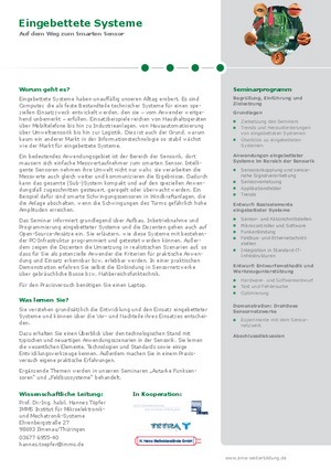 Eingebettete Systeme Auf dem Weg zum Smarten Sensor Worum geht es? Seminarprogramm Eingebettete Systeme haben unauffällig unseren Alltag erobert. Es sind Computer, die als feste Bestandteile technischer Systeme für einen speziellen Einsatzzweck entwickelt werden, den sie – vom Anwender weitgehend unbemerkt – erfüllen. Einsatzbeispiele reichen von Haushaltsgeräten über Mobiltelefone bis hin zu Industrieanlagen, von Hausautomatisierung über Umweltsensorik bis hin zur Logistik. Dies ist auch der Grund, warum kaum ein anderer Markt in der Informationstechnologie so stabil wächst wie der Markt…