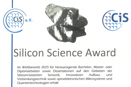 Silicon Science Award für die Arbeit „Zeitkorrelierte Einzelphotonenzählung zur Zeitbereichscharakterisierung von Hochgeschwindigkeitslichtquellen mittels konfigurierbarer Logikbausteine“