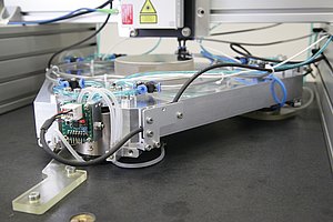 Für die Grundlagenforschung zur Nanomesstechnik und Nanofabrikation der TU Ilmenau wurde mit der Nanofabrikationsmaschine NFM-100 ein System realisiert, welches zum einen die Abtastung von Oberflächen (AFM) und zum anderen die Bearbeitung mittels Feldemissions-Rastersondenlithographie erstmalig in einem xy-Verfahrbereich von Ø100 mm möglich macht.
